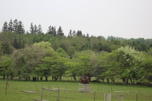 We call this area Apple Lane. It was here when we bought the farm almost 25 years ago. A double row of mature apple trees that go no where! We often wonder about it. Was it a laneway once upon a time and if so where was it supposed to go? It ends at our property line. It starts in the midde of our property. It is a mystery. I wanted to take a photo from the end of the lane as it is quite pretty but the mosquitoes are impossible this evening and I abandoned the idea of making the trekk to get a better photo.